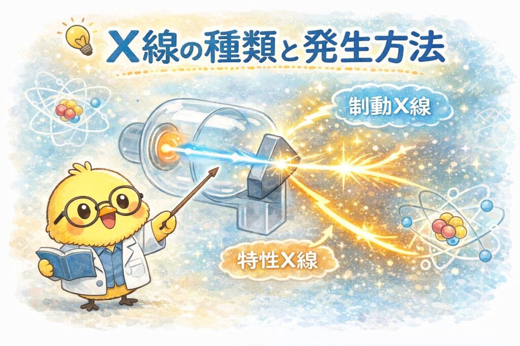 光電効果とは、光が金属に当たったとき電子が飛び出す現象です。この記事では、光電効果の公式や式、仕事関数の考え方、グラフの読み取りなどをわかりやすく解説します。放射線技師国家試験・理系入門学習にもおすすめです。